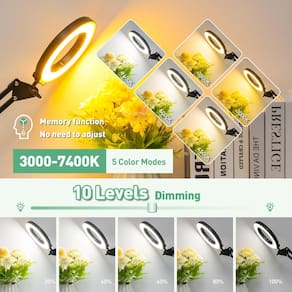 - Iluminação LED brilhante regulável: esta lâmpada de lupa atualizada possui LEDs de alto brilho, 50% mais brilhantes do que as lâmpadas de mesa padrão, proporcionando iluminação uniforme e sem brilho. Com 5 modos de cor, 10 níveis de brilho e uma função de memória, oferece iluminação personalizável através de um controlador de 4 botões montado na parte superior.