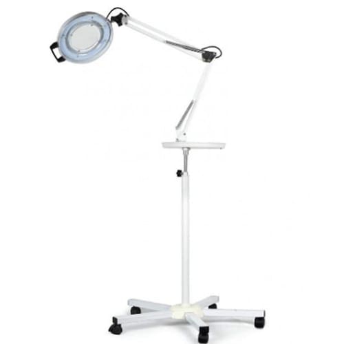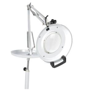 A lupa com tripé e iluminação em led – estek é fabricada em aço e um plástico resistente o que permite leveza ao produto, manuseio simples e grande durabilidade. O ajuste é fácil e preciso, pois as articulações são balanceadas por molas. Possui luz fria em led que é mais econômica e tem maior durabilidade e por ser uma iluminação circular com coroa de led garante uma iluminação potente e livre de sombras, o que melhora a visualização do profissional e consequentemente a qualidade do serviço executado. Possui de série uma lente bifocal pequena para visualização em maior aumento de detalhes do cliente.