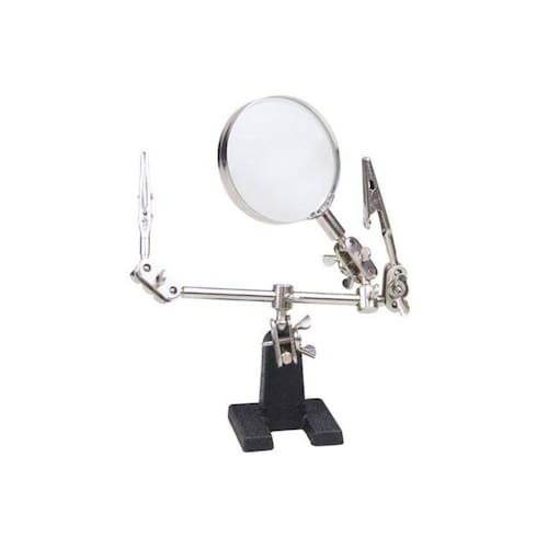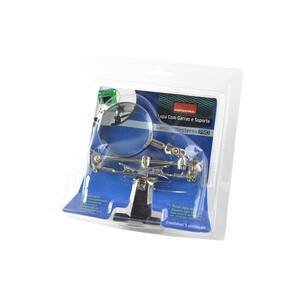 Lupa de aumento com garras articuláveis tipo jacaré ajustáveis em diversas direções e suporte com base em ferro fundido, seu peso ajuda a dar estabilidade na ferramenta, ideal para trabalhar com soldagens de eletrônicos, aeromodelismos, joalheria, artesanato, mineralogia e consertos diversos. Informações do Produto: Material de fabricação vidro e ferro Garantia do Fornecedor Contra defeitos de fabricação 3 meses Dimensões aproximadas em cm: fechado 14 x 13 / lupa 6 x 6 Os acessórios utilizados na produção das fotos não acompanham o produto Produto de ótima qualidade e durabilidade Material leve e prático Marca Western Código de Barras EAN: 7897186003498 Dimensões aproximadas da embalagem cm AxLxP: 09x21x23cm Peso aproximado da embalagem do produto: 450 gramas Ean: 7897186003498