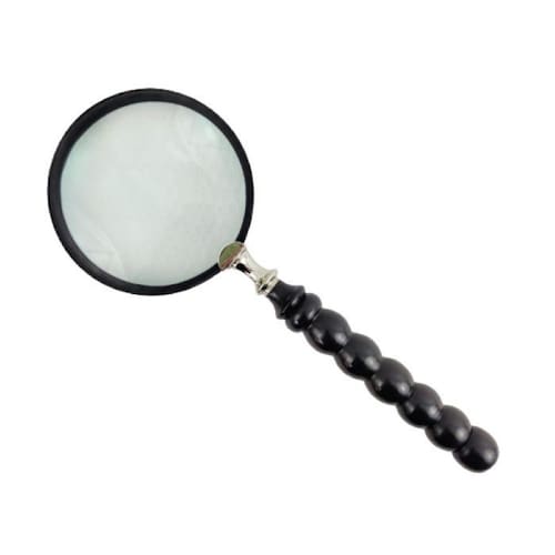Fabricada com materiais de alta qualidade, como metal, madeira e vidro, a Lupa de Aumento Preta é resistente e durável. Sua cor preta confere um toque de elegância e sofisticação ao ambiente.