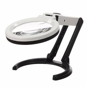 Lupa Luminária 10 Led Com Tripé Para Estética Alimentação à Pilha ou conectado na tomada 110V ou 220V (Bivolt) A Lupa LED possui um design arrojado e foi projetada para ser um equipamento funcional, luxuoso e dentro da nova tendência energética LED (Luz Emitida por Diodo), que além de ser uma luz fria, é mais potente, econômica e durável, a qual, no projeto deste produto, foi dimensionado em grande quantidade para garantir máxima qualidade luminosa. Seu ajuste é fácil, por ser articulável. Sua iluminação circular fluorescente garante uma iluminação potente e livre de sombras, o que melhora a visualização do profissional e, consequentemente, a qualidade do serviço executado. Sua lente é feita de Cristal Óptico, o que garante a funcionalidade perfeita do produto, e além disso, possui uma lente bifocal pequena para visualização em maior aumento de detalhes. A versão apoio de mesa permite um acoplamento perfeito em diversas superfícies, como carrinhos auxiliares, mesas, entre outros. Uma lupa perfeita para joalheiros, técnicos, esteticistas, etc.