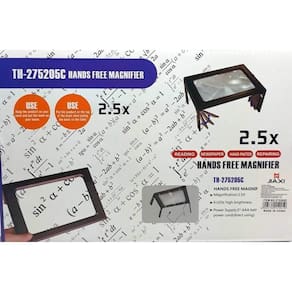 Lupa de Mesa com 6 Leds Mão Livre Amplia 2.5 X 23,5x15,5cm Lupa de Mesa com 6 Leds Mão Livre Ampliação 2.5X 23,5x15,5cm DESCRIÇÃO DO PRODUTO: Ideal para pessoas com qualquer grau de deficiência visual, idosos E não deficientes para utilizarem no seu dia a dia. Lupa ideal para ler livros, jornais, revistas, bulas, manuais, pequenos Trabalhos manuais entre outros. Possui 6 LED´s para iluminação auxiliar ou uso noturno. O Produto também acompanha suporte para sustentação em telas de Monitores servindo também como apoio de pescoço para leitura Pés para manter a lupa em cima do ponto de leitura ou trabalho mantendo As mãos livres entre outras aplicações. Funciona com 2 pilhas AAA Não incluso ou cabo USB Incluso Possui flexibilidade e prodtuzido em PVC Na cor Marrom Atenção Usuários: Produto não pode ser direcionado ao sol ou qualquer fonte de luz forte.