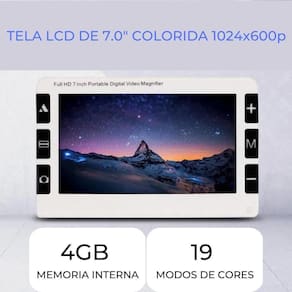 Apresentamos a você a lupa eletrônica portátil com tela lcd 7.0 com sua tela colorida de alta definição, ampliação continuamente ajustável de 2x-32x e câmera dupla, essa lupa eletrônica é uma solução perfeita para pessoas com problemas de visão ou para aqueles que precisam de uma ajuda extra para ler textos.Com seus 19 modos de cores diferentes, você pode personalizar a lupa para a melhor leitura, e sua bateria de lítio 5200mah recarregável, com uso contínuo de 4 horas, permite que você leve sua lupa eletrônica para onde precisar. O brilho ajustável do backlight e a intensidade ajustável da luz de preenchimento tornam a leitura ainda mais fácil e confortável.Além disso, a lupa eletrônica vem com várias funções extras, como o congelamento de tela, a função de cortina eletrônica para evitar interferência de luz. Também suporta saída de tv hdmi 1080i 60 fps ou saída audio/video.Não perca a oportunidade de adquirir sua lupa eletrônica portátil tela lcd 7.0. Ela vai mudar a maneira como você lê e facilitar sua vida. Compre agoraDetalhes técnicos:Tela de lcd 7.0 colorida de alta definição 1024x600p.Câmera dupla, visualização tanto de longe quanto de perto.Ampliação continuamente ajustável de 2x-32x.19 modos de cores para melhor leitura.Bateria de lítio 5200mah recarregável, com uso contínuo de 4 horas.Brilho ajustável do backlight e intensidade ajustável da luz de preenchimento.Congelamento de tela: congela uma imagem de texto na tela para facilitar a leitura.Função de cortina eletrônica: destaca o texto horizontalmente e verticalmente para evitar interferência de luz.As imagens podem ser capturadas, salvas, lembradas e transferidas para um pc.Função de lanterna.Saída de tv: suporta saída hdmi 1080i 60 fps ou saída audio/video.Suporte para escrita para ajudar a escrever.Desliga automaticamente sem uso por 3 minutos.Capa de proteção e transporte.Detalhes do produtoDimensão: 195 l x 125 c x 25 a mm.Peso: 395g incluindo a bateria.Inclui: 1 vídeo lupa digital portátil tela 7,0 colorida.1 cabo de saída de vídeo. 1 cabo hdmi. 1 cabo usb.1 cabo dcin para carregamento.1 adaptador de energia ac 110v-240v . 1 manual do usuário.1 pano de limpeza.1 capa de transporte. Marca: Vida Inclusiva