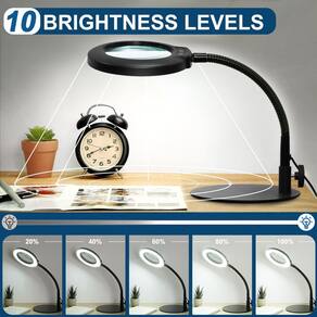- Ampliação de 10 x ? Atualize seu auxílio visual com nossa lâmpada de mesa com uma lente de vidro genuíno de 11 cm, oferecendo 1000% de ampliação para visualizações claras e sem distorção. Esta lâmpada de aumento é perfeita para pessoas que precisam de assistência visual durante tarefas prolongadas de close-up ou devido a fadiga ocular relacionada à idade, garantindo uso confortável e prolongado sem tonturas.