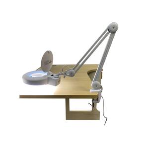 LUPA DE MESA E BANCADA PROFISSIONAL LED BIVOLT MOD. LP-700 COM AUMENTO DE 8X DESCRIÇÃO: A lupa de Mesa e Bancada mod. LB-700 possui lente de cristal óptico com 127mm e aumento de 8X. Conta com braço articulável, iluminação por 60 leds de 12 W de potência e alimentação bivolt de 100 V ~ 240 V em 50/60 Hz. Perfeita para o uso em diversas áreas como eletrônica, relojoarias, podologia entre outras várias aplicações, com riqueza de detalhes. DESTAQUES: Iluminação a led bivolt, aumento de 8 X, não precisa furar a mesa ou a bancada, conta com fixador tipo morsa. APLICAÇÕES: Equipamento utilizado para o auxílio na ampliação de objetos, assim como: equipamentos eletrônicos, relógios, componentes eletrônicos, bancadas de manutenção e etc. ESPECIFICAÇÕES TÉCNICAS: Estrutura metálica Braço regulável e articulável Fixação: fixador para bancada tipo morsa Iluminação: Lâmpada Led de cor branca, protegida por acrílico. Tampa protetora para a lente Fator de ampliação: 8x (oito vezes) Potência: 12 Watts Alimentação: Bivolt 100 V ~ 240 V Cor do conjunto: branca Diâmetro de lente: 127 mm Temperatura de operação: 5 °C ~40 °C. Umidade de operação: ?95 % Peso: 3,2 kg Medidas: 365 mm x 410 mm x 410 mm ACESSÓRIOS FORNECIDOS: Lâmpada (já instalada) Cabo de alimentação (embutido) Fixador para bancada tipo morsa