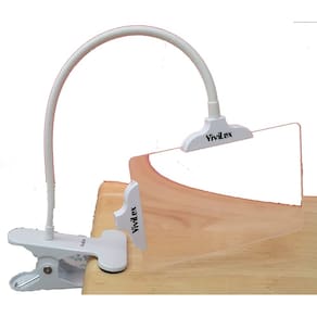 - Clipe, cole ou fixe à sua lâmpada de tarefa: trabalhe do seu jeito com a lupa ViviLux Prenda-a à sua lâmpada de LED ViviLux com os clipes de conexão dupla ou use-a sozinha com a base incluída para máxima versatilidade.