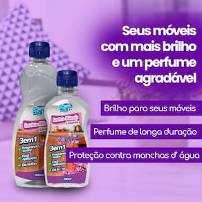 Dê um toque mais brilho e proteção aos seus moveis. Experimente o nosso lustra móveis doctor sam com sua fórmula exclusiva, promove a limpeza e cria uma camada protetora de silicone que ajuda a prevenir arranhões e danos. Sua fragrância delicada de lavanda deixará seus móveis com um perfume suave e agradável. Proteja seus móveis com estilo, experimente agora o lustra móveis doctor sam.