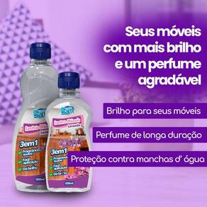 Dê um toque mais brilho e proteção aos seus moveis. Experimente o nosso lustra móveis doctor sam com sua fórmula exclusiva, promove a limpeza e cria uma camada protetora de silicone que ajuda a prevenir arranhões e danos. Sua fragrância delicada de lavanda deixará seus móveis com um perfume suave e agradável. Proteja seus móveis com estilo, experimente agora o lustra móveis doctor sam.