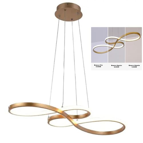 O lustre possiu três temperaturas de cor: Branco Frio, Neutro e Branco Quente. Para fazer a mudança das temperaturas de cor basta desligar e ligar o interruptor do seu próprio ambiente. Altura do lustre é regulável.