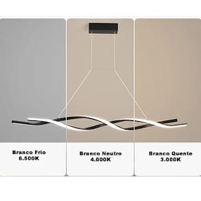 O lustre possiu três temperaturas de cor: Branco Frio, Neutro e Branco Quente. Para fazer a mudança das temperaturas de cor basta desligar e ligar o interruptor do seu próprio ambiente. Altura do lustre é regulável.