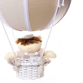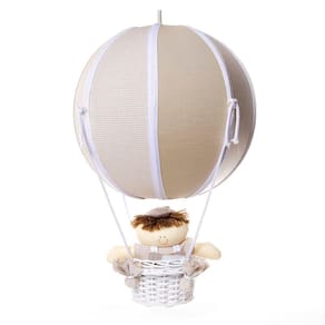 O Lustre Balão é a combinação perfeita entre o funcional e o belo. Encantese com os detalhes, que esse lustre proporcionará para a decoração do quarto do bebê, ao mesmo tempo, em que trará todo conforto com a iluminação aconchegante e convidativa. Dados TécnicosLustre em formato de balão bolinha feito com armação de arame galvanizado com a parte interna em acetato, forrado em tecido e cestinha de vime sintético com ursinha o ou bonequinha o .Acompanha fiação completa. Lâmpadas SuportadasEconômicas/ Led: Qualquer LâmpadaIncandescente amarela : Até 40w por Soquete MedidasDiâmetro do Balão: 27 cmAltura sem a cestinha: 27 cmAltura com a cestinha: 50 cmComprimento da fiação: 1 metro