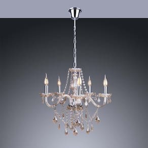 Lustre Candelabro de Cristal France Nice 5 braços E14 Cristal: Champagne Voltagem: 110V/220V Lustre Candelabro de Cristal France Nice 5 braços E14 Seguindo o estilo clássico, o Lustre France Nice acrescenta sofisticação e elegância ao seu projeto de iluminação. Seus detalhes delicados e charmosos são de fácil harmonização com qualquer decoração. Feito com material de ótima qualidade Durabilidade e resistência são qualidades notáveis no Lustre France Nice. Informações Técnicas Cores Disponíveis conforme disponibilidade em Transparente - Champagne Dimensões do produto 84cm de altura total - 53cm de diâmetro Peso do produto 3,045 Altura ajustável Sim Tipo de Soquete E14 Quantidade de Lâmpadas Necessárias 05 Potência Máxima por Lâmpada 40w Acompanha Lâmpada Não Material Vidro e Cristal Necessita Montagem Sim Uso Teto Tensão Bivolt 90 dias após emissão da ao consumidor Para que serve: a linha France Nice faz tanto sucesso que sempre está entre as TOPs vendas. O design da linha Maria Thereza, único e sofisticado, com cristais legítimos e verdadeiros, você também encontra na linha Cristal France Nice que além de ser uma peça com uma iluminação de boa qualidade é uma acessório de decoração que vale a pena. Onde colocar: Imagina só esse lustre na sua sala de jantar ou na sua sala de estar Impossível não se apaixonar, se o ambiente for entre pequeno e médio a peça ficará perfeita. Ao contrário do que muitas pessoas pensam os lustres candelabros também podem ser em quartos de casais, quarto de solteiro, varandas gourmets, banheiros e principalmente em quartos infantis e de bebê. Nada melhor do que um lustre digno de princesa no quarto de uma menina. Dicas Práticas: para causar a sensação de amplitude no ambiente escolha lâmpadas de temperatura fria/branca, mas se o objetivo for criar um ambiente de relaxamento e calmaria opte por lâmpadas na temperatura quente/amarela Cuidados: limpar com pano seco e não utilizar produtos abrasivos Marca: Não Informado
