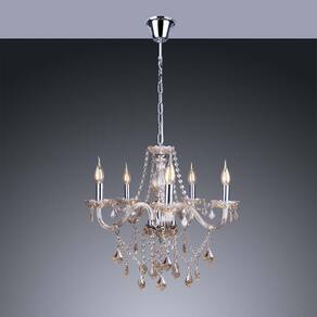 Lustre Candelabro de Cristal Legítimo France Nice 5 braços E14 Cristal: Champagne Voltagem: 110V/220V Lustre Candelabro de Cristal Legítimo France Nice 5 braços E14 Seguindo o estilo clássico, o Lustre France Nice acrescenta sofisticação e elegância ao seu projeto de iluminação. Seus detalhes delicados e charmosos são de fácil harmonização com qualquer decoração. Feito com material de ótima qualidade Durabilidade e resistência são qualidades notáveis no Lustre France Nice. Informações Técnicas Cores Disponíveis (conforme disponibilidade em estoque)Transparente - ChampagneDimensões do produto84cm de altura total - 53cm de diâmetroPeso do produto3,045Altura ajustávelSimTipo de SoqueteE14Quantidade de Lâmpadas Necessárias05Potência Máxima por Lâmpada40wAcompanha LâmpadaNãoMaterialVidro e CristalNecessita MontagemSimUsoTetoTensãoBivoltGarantia90 dias após emissão da nota fiscal ao consumidor Para que serve: a linha France Nice faz tanto sucesso que sempre está entre as TOPs vendas. O design da linha Maria Thereza, único e sofisticado, com cristais legítimos e verdadeiros, você também encontra na linha Cristal France Nice que além de ser uma peça com uma iluminação de boa qualidade é uma acessório de decoração que vale a pena. Onde colocar: Imagina só esse lustre na sua sala de jantar ou na sua sala de estar Impossível não se apaixonar, se o ambiente for entre pequeno e médio a peça ficará perfeita. Ao contrário do que muitas pessoas pensam os lustres candelabros também podem ser usado em quartos de casais, quarto de solteiro, varandas gourmets, banheiros e principalmente em quartos infantis e de bebê. Nada melhor do que um lustre digno de princesa no quarto de uma menina. Dicas Práticas: para causar a sensação de amplitude no ambiente escolha lâmpadas de temperatura fria/branca, mas se o objetivo for criar um ambiente de relaxamento e calmaria opte por lâmpadas na temperatura quente/amarela Cuidados: limpar com pano seco e não utilizar produtos abrasivos