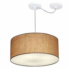 Lustre Cilíndrico C/ Desvio De Centro Md-4151 Cúpula Tecido 50x25cm Palha