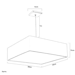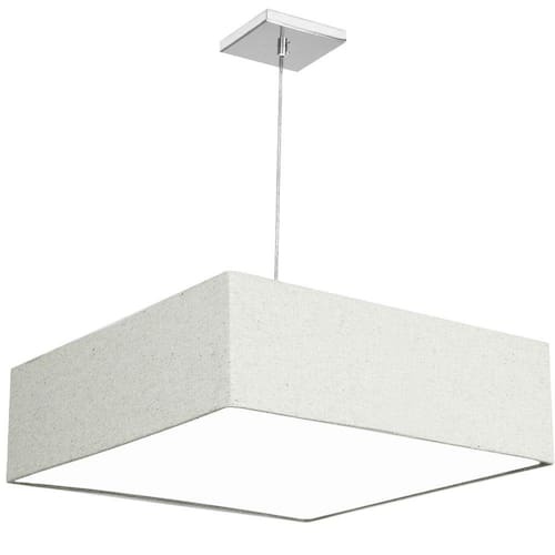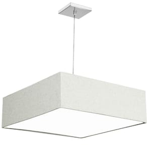 Pendente Dome Quadrado O Pendente Dome adiciona luxo e sofisticação a sua decoração, Sua aplicação é muito versátil podendo ser instalada em quartos, sala de jantar, sala de estar, varanda, corredores ou onde a imaginação mandar. Nosso pendente é feito em com Tecido e revestimento de Plástico na parte interna, causando um lindo efeito luminoso, Uma peça que vai fechar com chave de ouro a decoração do seu ambiente. É indicada somente para uso interno, Utiliza 3 Lâmpadas E-27 de no máximo 30w cada.