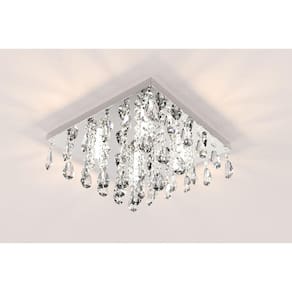 Material: Inox espelhado Medidas: 32x32cm x Altura: 18cm Cristal : Castanha 14mm e Amêndoa 50mm Transparente Lâmpadas: 04 Lâmpadas Modelo G9 Obs. Lâmpadas não inclusa no produto Compatível com Lâmpadas de Led G9 Modelo: Sobrepor / Bivolt Peso: 2,5 kg : 90 dias contra defeito de fabricação Marca: Não Informado