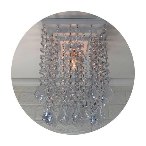 Com uma base plafon quadrada de 19 cm em acrílico na cor branca e castanhas de acrílico transparente, esse lustre traz um charme especial para qualquer ambiente. Sua altura de 30 cm é ideal para iluminar de forma eficiente e proporcionar uma atmosfera agradável e acolhedora.