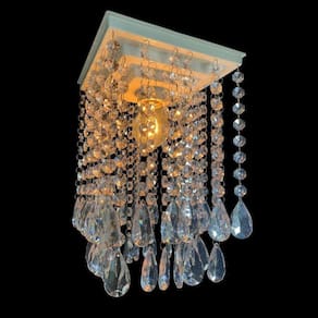 Com uma base plafon de 19 cm em acrílico na cor branca e castanhas de acrílico transparente, essa luminária se adapta a qualquer tipo de decoração, tornando-se um elemento de destaque em sua sala, quarto, corredor, escadas, hall, sala de jantar, salão de festas ou até mesmo seu escritório.