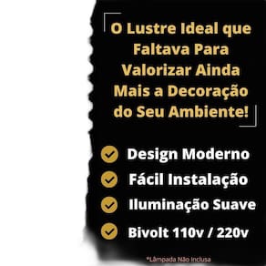 Além disso, o lustre é bivolt, ou seja, pode ser utilizado tanto em redes elétricas de 127v quanto de 220v, oferecendo versatilidade e praticidade na hora da instalação. Vale ressaltar que o lustre é enviado montado e pronto para instalação, facilitando ainda mais o seu uso.