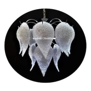 Lustre Folhas Para 3 Lampadas Soquete E27 Potência Máxima 60w Pode-se usar lâmpada Incandescente ou econômica. Base e acabamentos em inox cromado Folha em policarbonato branco com 20 x 12 cm 12 Folhas Diâmetro: 40cm + Comprimento 40 cm + 25 cm de corrente ajustável