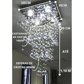 A Luz Decor e Lustres, fabricantes de lustres de cristais, acrílicos, tem como objetivo garantir produtos de qualidade com preços competitivos no mercado de Lustres, Pendentes e Luminárias.DESCRIÇÃO DO PRODUTO* Lustre Com 64 cristais de 40mm* Modelo: Torre* Altura: 90CM Á 1,10M De Altura* Base de inox espelhado 38x38cm acabamento corte a laser.* Castanhas de cristal de 14mm.* Modelo para 5 Lâmpada GU10 (Lâmpada branco quente inclusa)* Direto da fábrica para seu ambiente