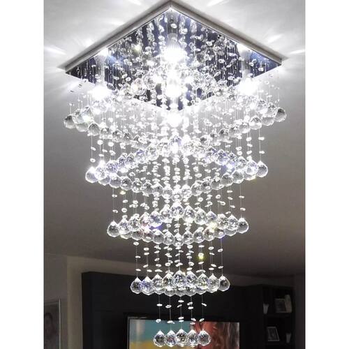 Lustre De Cristal Com Base De Inox 45x45cm - Tamanho: 2,20m / Voltagem: Bivolt