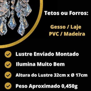 Esse lustre possui voltagem bivolt, podendo ser utilizado tanto em redes elétricas de 127v quanto de 220v. Além disso, ele é enviado montado e pronto para instalação, facilitando ainda mais o seu uso.