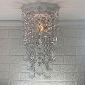 Com uma base plafon de 17 cm em acrílico na cor branca e castanhas de acrílico transparente, esse lustre combina com qualquer tipo de decoração, seja na sala, no quarto, no corredor, nas escadas, no hall, na sala de jantar, no salão de festas ou até mesmo no escritório. Além disso, sua altura de 32 cm proporciona uma iluminação eficiente em qualquer ambiente.