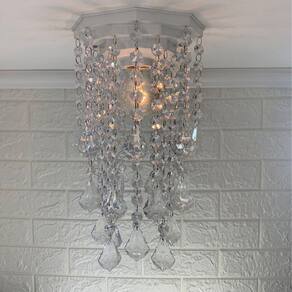 Com uma base plafon de 17 cm em acrílico na cor branca e castanhas de acrílico transparente, esse lustre combina com qualquer tipo de decoração, seja na sala, no quarto, no corredor, nas escadas, no hall, na sala de jantar, no salão de festas ou até mesmo no escritório. Além disso, sua altura de 32 cm proporciona uma iluminação eficiente em qualquer ambiente.