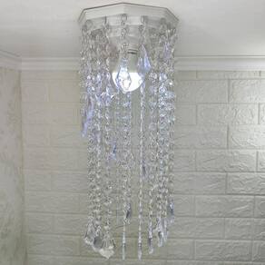 Ideal para diversos ambientes, como sala, quarto, corredor, escadas, hall, sala de jantar, salão de festas ou até mesmo seu escritório, esse lustre é versátil e combina com qualquer tipo de decoração. Sua base plafon de 17 cm em acrílico na cor branca e as castanhas de acrílico transparente proporcionam uma iluminação suave e agradável, criando um ambiente acolhedor e convidativo.