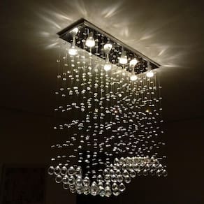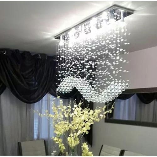 A Luz Decor e Lustres, fabricantes de lustres de cristais, acrílicos, tem como objetivo garantir produtos de qualidade com preços competitivos no mercado de Lustres, Pendentes e Luminárias.DESCRIÇÃO DO PRODUTO* Lustres com 80 cristais k9 legítimos de 30mm.* Modelo: Ondular* Altura: 60cm á 90cm* Base de inox espelhado de 70x20cm com acabamento a laser.* Castanhas de cristal de 14mm.* Modelo para 06 Lâmpadas GU10 (Lâmpadas inclusas)* Direto da fábrica para seu ambiente