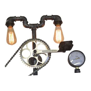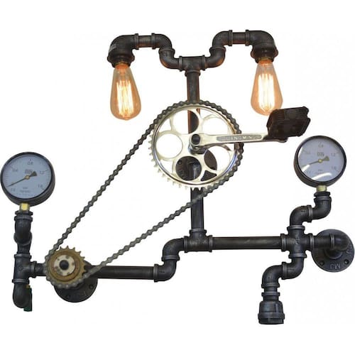 Com estilo vintage o ?Lustre de Parede Retrô Bike Tube em Metal Pelegrin PEL-062, se destaca por sua forma que simula uma mistura de tubulação hidráulica antiga com partes de bicicletas e lâmpadas expostas pendentes trazendo um charme único com simplicidade e estilo.