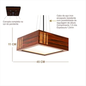 Lustre Decorativo Madeira Pendente Madeiro Nog 45cm Cor: Pau Ferro A iluminação certa pode transformar um ambiente, deixando-o mais requintado, confortável e aconchegante. Nossas luminárias são criadas e desenvolvidas com a intenção fazer essa transformação, pois são construídas com material de primeira e com projetos muito bem elaborados, unindo beleza, funcionalidade e bom gosto. Conseguimos com elas, fazer o casamento do acrílico, alumínio e madeira de maneira harmônica.