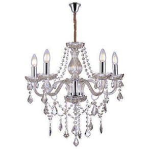 Lustre Glam Maria Tereza Champanhe 5 Braços E14 Taschibra - Características Gerais do Produto: Dimensões AxLxP cm : 55 x 56 x 56 Produzido em: Aço, Vidro e Cristais K9 Voltagem: 220V Cor Acabamento: Âmbar / Champanhe Cor do Cabo: Transparente Potência Máxima por soquete : 40W Para Uso em Soquete: E14 Comprimento do Cabo: 50 cm, altura regulável : 90 dias junto ao fabricante Aplicação: Sobrepor Acompanha Lâmpada: Não Acompanha o produto: 01 Lustre Completo 01 Kit Instalação 01 Manual de Instalação : 90 dias junto ao fabricante Marca: Não Informado