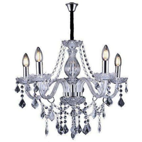 Lustre Glam Maria Tereza Transparente 5 Braços E14 Taschibra - Características Gerais do Produto: Dimensões AxLxP cm : 55 x 56 x 56 Produzido em: Aço, Vidro e Cristais K9 Voltagem: Bivolt tanto em 110v como em 220v Cor Acabamento: Transparente / Claro Cor do Cabo: Transparente Potência Máxima por soquete : 40W Para Uso em Soquete: E14 Comprimento do Cabo: 50 cm, altura regulável : 90 dias junto ao fabricante Aplicação: Sobrepor Acompanha Lâmpada: Não Acompanha o produto: 01 Lustre Completo 01 Kit Instalação 01 Manual de Instalação : 90 dias junto ao fabricante Marca: Não Informado