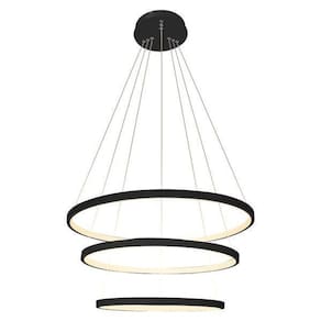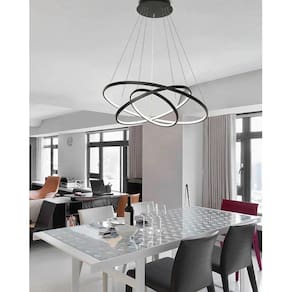 Especificações técnicasLed integrado3 led 36w, 30w e 23w - total 89wLuz branco quente 3200kModelo: pendente led 3 anéisMaterial: estrutura em alumínio com acabamento pretoDifusor em sílica gelCabo ajustável até 2 m (fácil ajuste nos 3 aros para fazer o seu design).Diâmetro dos anéis: 1 anel 60cm/ 2 anel 40cm / 3 anel 30cmAcabamento: arco preto, luz branco quente.Voltagem: bivoltItens inclusos:Lustre pendente circularParafusos para instalação Marca: Brinovar