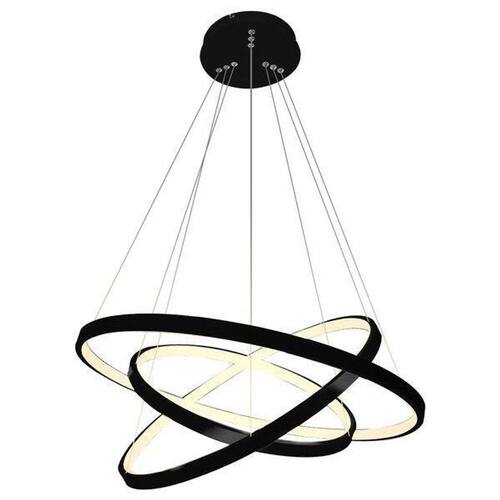 Especificações técnicasLed integrado3 led 36w, 30w e 23w - total 89wLuz branco quente 3200kModelo: pendente led 3 anéisMaterial: estrutura em alumínio com acabamento pretoDifusor em sílica gelCabo ajustável até 2 m (fácil ajuste nos 3 aros para fazer o seu design).Diâmetro dos anéis: 1 anel 60cm/ 2 anel 40cm / 3 anel 30cmAcabamento: arco preto, luz branco quente.Voltagem: bivoltItens inclusos:Lustre pendente circularParafusos para instalação Marca: Brinovar