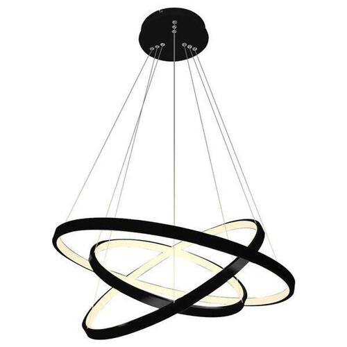 Especificações técnicasLed integrado3 led 36w, 30w e 23w - total 89wLuz branco quente 3200kModelo: pendente led 3 anéisMaterial: estrutura em alumínio com acabamento pretoDifusor em sílica gelCabo ajustável até 2 m fácil ajuste nos 3 aros para fazer o seu design .Diâmetro dos anéis: 1 anel 60cm/ 2 anel 40cm / 3 anel 30cmAcabamento: arco preto, luz branco quente.Voltagem: bivoltItens inclusos:Lustre pendente circularParafusos para instalação Marca: Brinovar