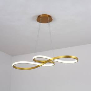 Especificações técnicas: Marca: brinovar Modelo: pendente infinito/clave sol Cor: dourado Acabamento: acetinado Material: estrutura em alumínio e iluminação em led Indicação: ambiente interno Instalação: teto Potência total: 45w Temperatura da iluminação: branco frio, morno/neutro e quente 3000 à 6000k Intensidade da iluminação e brilho: ajustável pelo controle remoto Sistema: energia elétrica Voltagem: bivolt Medidas do lustre: 31cm c x 75cm l x 4cm a Cabo ajustável de até 1.20m Com controle Fácil ajuste Led integrado Garantia: 90 dias