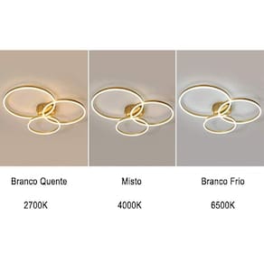 O lustre possiu três temperaturas de cor: Branco Frio, Misto e Branco Quente. Para fazer a mudança das temperaturas de cor basta desligar e ligar o interruptor do seu próprio ambiente.
