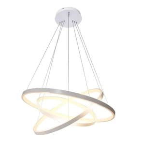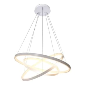 ESPECIFICAÇÕES TÉCNICAS - LED integrado - Luz Branco Quente/Frio - Modelo: Pendente LED 3ANÉIS - Material: Estrutura em alumínio com acabamento em silicone - Difusor em sílica gel - Cabo ajustável até 1 Metro (Fácil ajuste nos 3 aros para fazer o seu design). - Diâmetro dos anéis: 1 Anel 57cm/ 2 Anel 40cm / 3 Anel 20cm - Acabamento: Arco com fita led com silicone - Voltagem: 110V ou 220V (Selecionar a vontagem durante a compra)