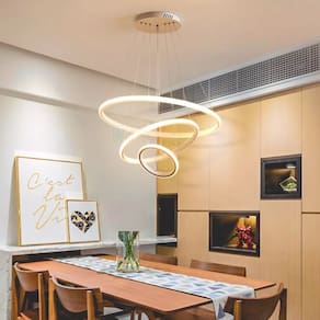 A Luminária Lustre LED de Teto 3 Anéis é uma peça de iluminação elegante e moderna, projetada para adicionar estilo e luminosidade a qualquer espaço. Composta por três anéis concêntricos suspensos do teto, essa luminária cria um visual contemporâneo e sofisticado. Cores Disponíveis: Branco - Dourado - Preto