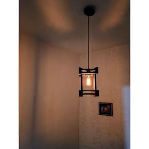Lustre luminária de teto rústico de madeira com lâmpada retrô vintage Lustre confeccionado em madeira com lâmpada estilo retrô vintage. Ideal para decorar e clarear o ambiente, perfeito para aquele hall da escada ou o espaço sobre o lavabo. Perfeito também para colocar sobre uma mesa de refeição, seja na sua residência ou comércio. Dê aos seus clientes e visitas uma excelente impressão e mostre o quão antenado você está com o mundo da decoração utilizando peças com design vintage. Características: Fabricante: fabricação própria. Material: madeira de reflorestamento Acabamento: pintura em Betume apresentando aspecto de envelhecido/rústico. Lâmpada: 1 Lâmpada Retrô (inclusa) Soquete: tipo E-27, feito de termoplástico. Dimensões: 18x18x27cm (comprimento x largura x altura). Peso: 1kg. Obs.: Acompanha 1 metro de fio pendente e canopla de instalação na cor preta. Embalado em plástico-bolha e revestido por papelão.