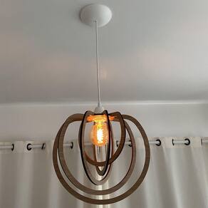 Lustre Luminária Pendente Teto Sala Balcão Circular Carvalho Pra você que está decorando ou buscando melhorar os seus ambientes, saiba que uma boa iluminação pode transformar o seu espaço, trazendo mais requinte, elegância, personalidade e conforto. Esse produto é confeccionado em madeira mdf de alta qualidade e montado manualmente por profissionais altamente qualificados. Especificações técnicas: Dimensões do produto cxlxa: 34 x 34 x 30cm; Peso do produto: 450g Cabo: pp, cor marrom, 1 metro ajustável ; Soquete: tipo e-27; Lâmpada: aceita diversos tipos eletrônica ou led - obs.: não acompanha lâmpada; Voltagem: 110v / 220v bivolt ; Produto vai montado, com todos os componentes elétricos para instalação cabo, canopla e componentes de fixação . Marca: Não Informado