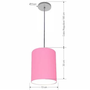 Lustre Luminária Pendente Vivare Free Lux PE-4102CZ Cúpula em Tecido 13x30cm - Cor: Rosa-bebê | Cor da Canopla: Canopla cinza e fio cristal