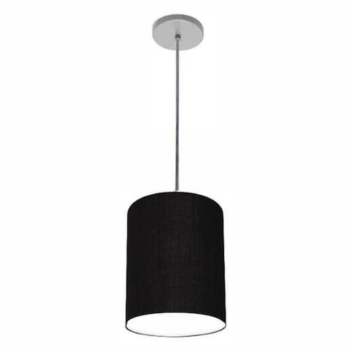 Lustre Luminária Pendente Vivare Free Lux Pe-4103cz Cúpula Em Tecido 15x20cm Preta Canopla Cinza E Fio Cristal
