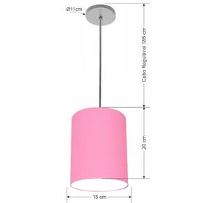 Lustre Luminária Pendente Vivare Free Lux PE-4103CZ Cúpula em Tecido 15x20cm - Cor: Rosa-tela | Cor da Canopla: Canopla cinza e fio cristal