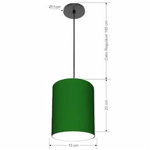 Lustre Luminária Pendente Vivare Free Lux PE-4103PR Cúpula em Tecido 15x20cm - Cor: Verde-folha | Cor da Canopla: Canopla preta e fio preto
