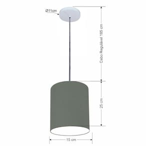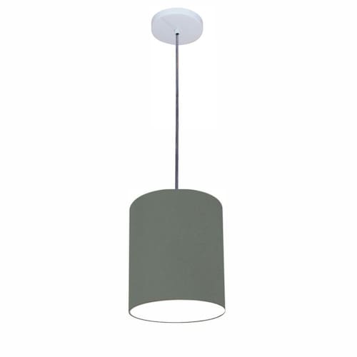 Lustre Luminária Pendente Vivare Free Lux PE-4104BR Cúpula em Tecido 15x25cm - Cor: Cinza-escuro | Cor da Canopla: Canopla branca e fio cristal