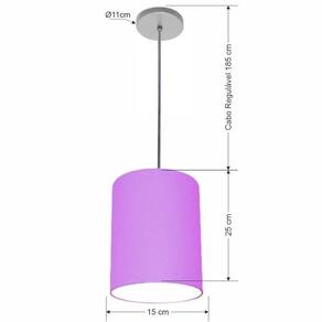 Lustre Luminária Pendente Vivare Free Lux Pe-4104cz Cúpula Em Tecido 15x25cm Lilás Canopla Cinza E Fio Cristal